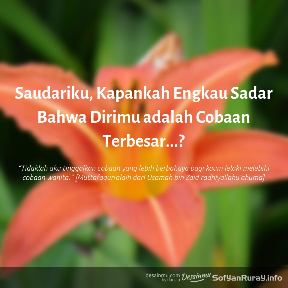 ? SAUDARIKU, KAPANKAH ENGKAU SADAR BAHWA DIRIMU ADALAH FITNAH (COBAAN) TERBESAR BAGIKU…?✅ Rasulullah…